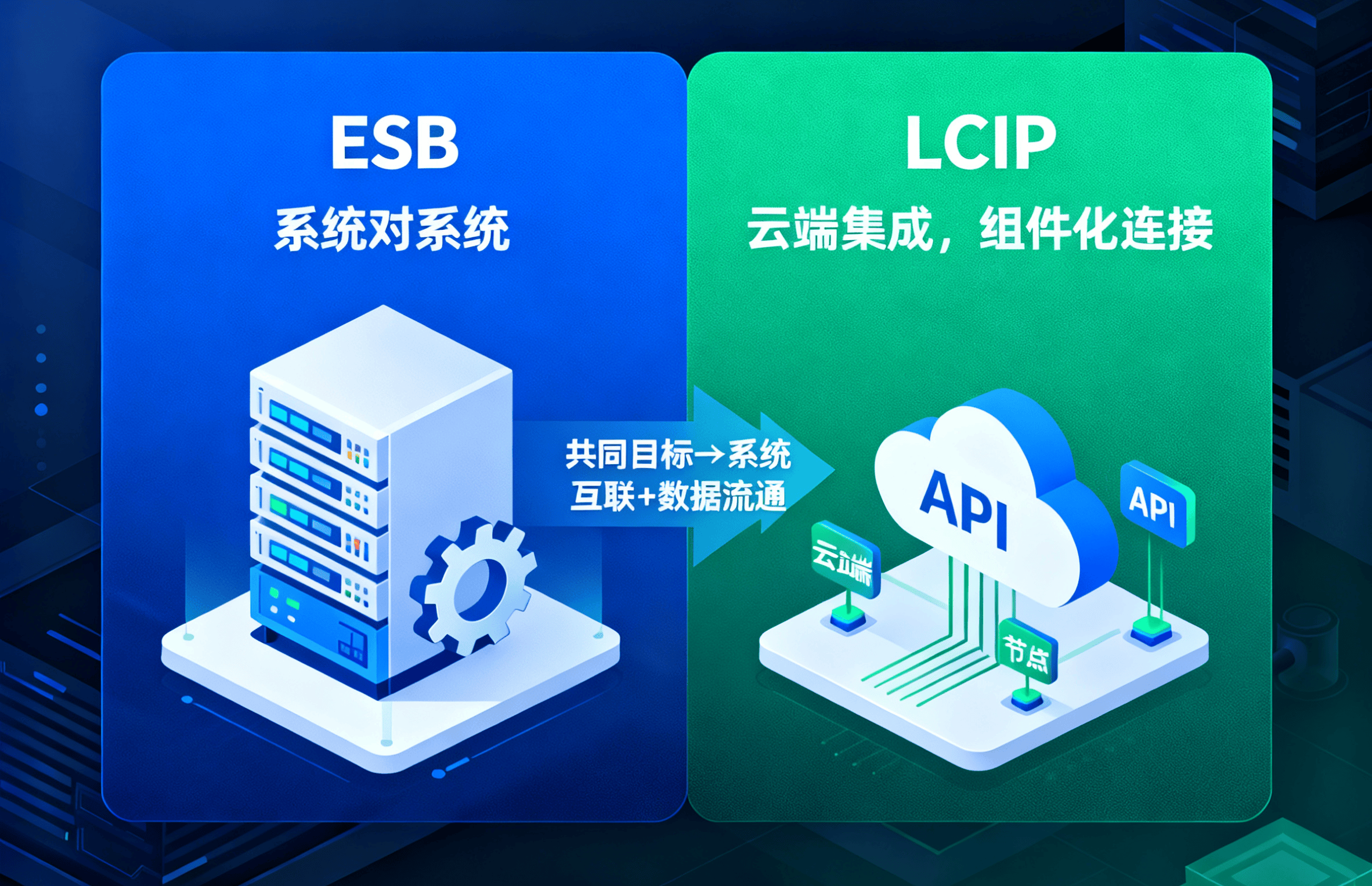 目前主流的两种集成方案分别是传统 ESB(企业服务总线,Enterprise Service Bus) 与 低代码集成平台 LCIP(Low-code Integration Platform)。